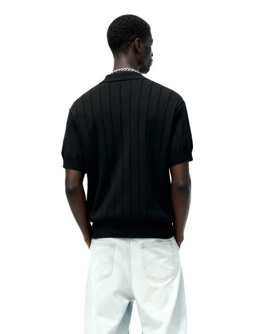 SAVE 25%Black Striped Knitted Polo T-Shirt