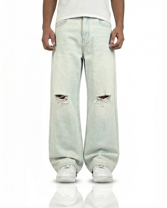 Phantom Blue Baggy Jeans- Stormy blue that hits every time. Style with oversized white tees or vests to keep the look fresh and dynamic. Layer with hoodies for a clean-meets-chaos streetwear statement.