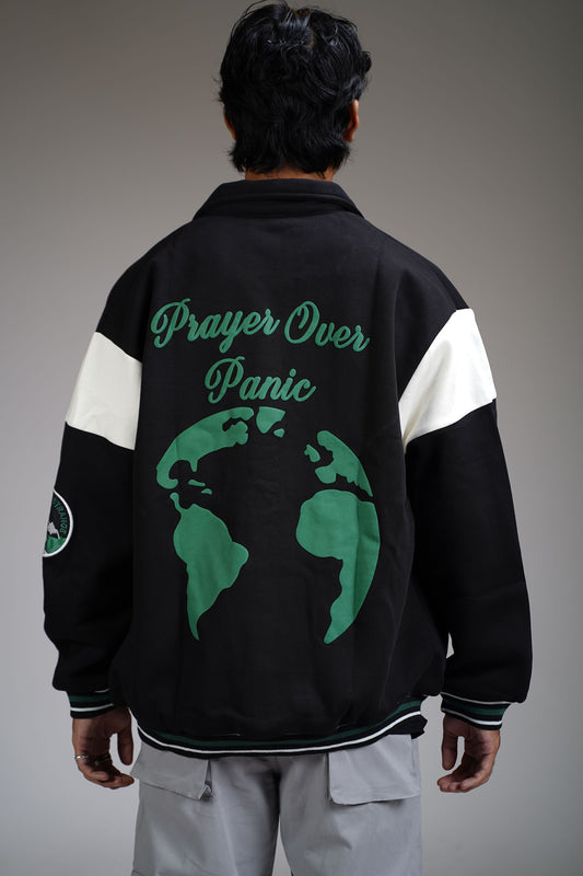 Prayer Over Panic Black Varsity Jacket