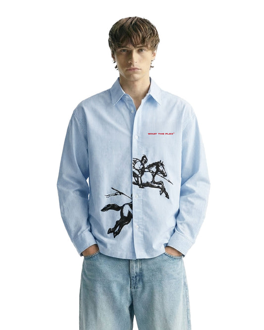 Progress Tribe Full Sleeves Blue and White Striped Shirt