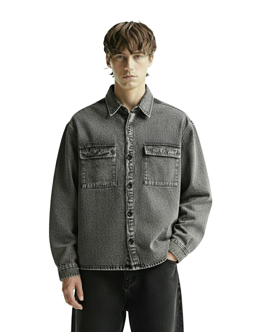 Grey Long Sleeve Stitched Denim Overshirt