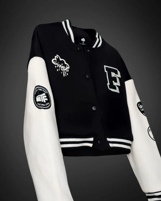 Did I Imagine It? Cropped Black Varsity Jacket for Women