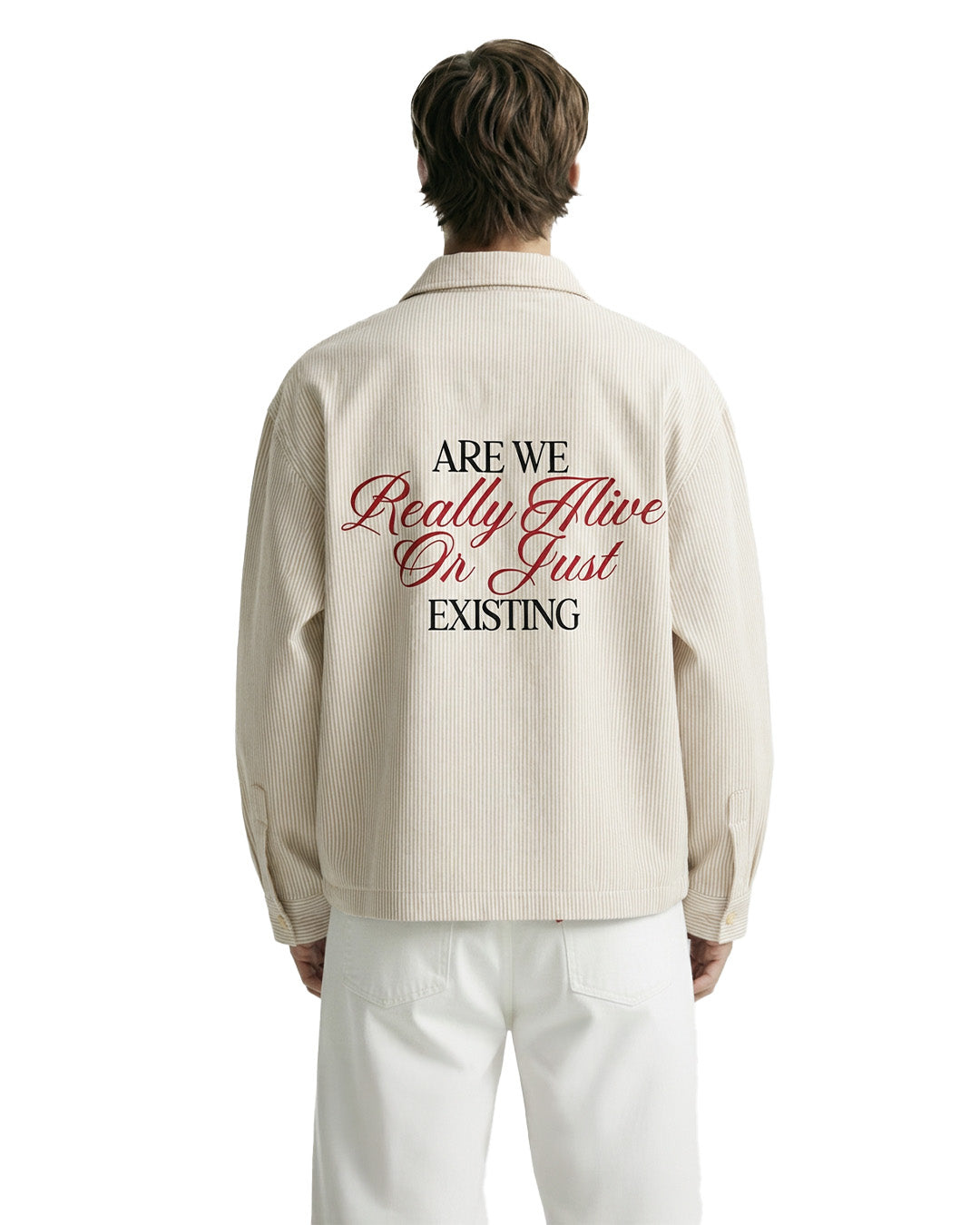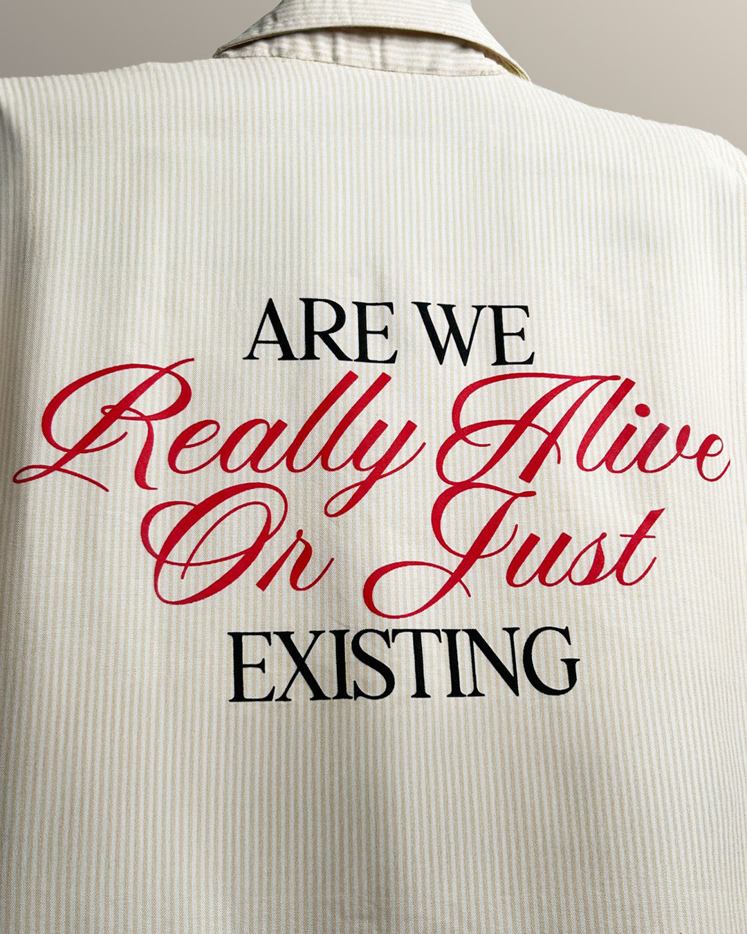 More than just something you put on, the Alive Shirt is about staying present. Calm stripes, muted beige, and a mood that leans into thought, not noise.