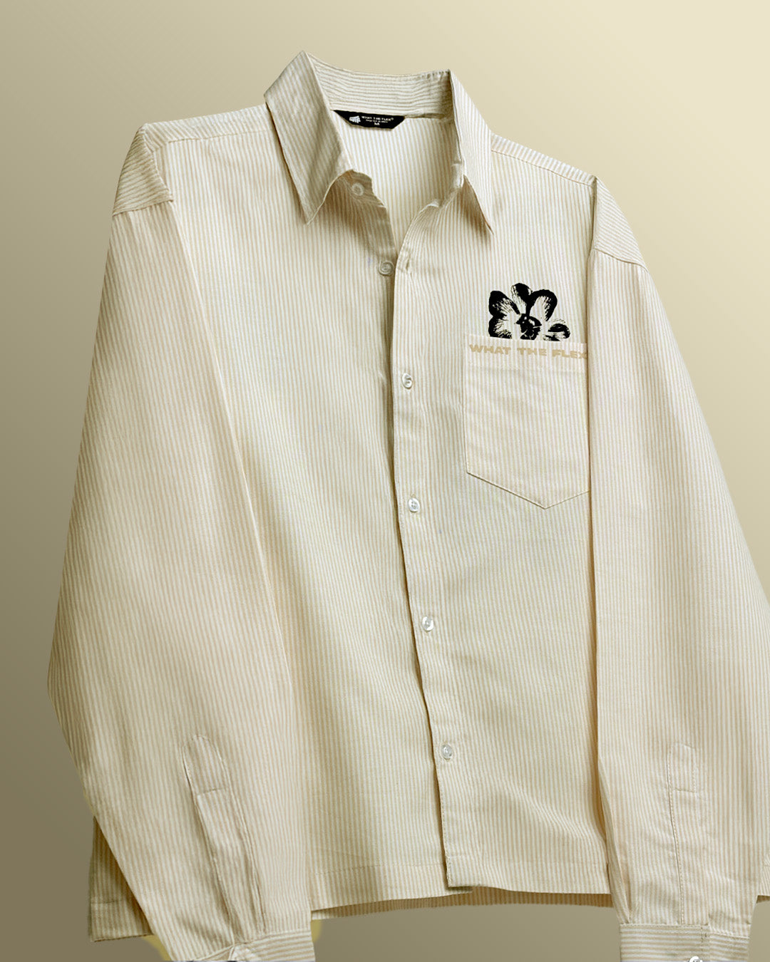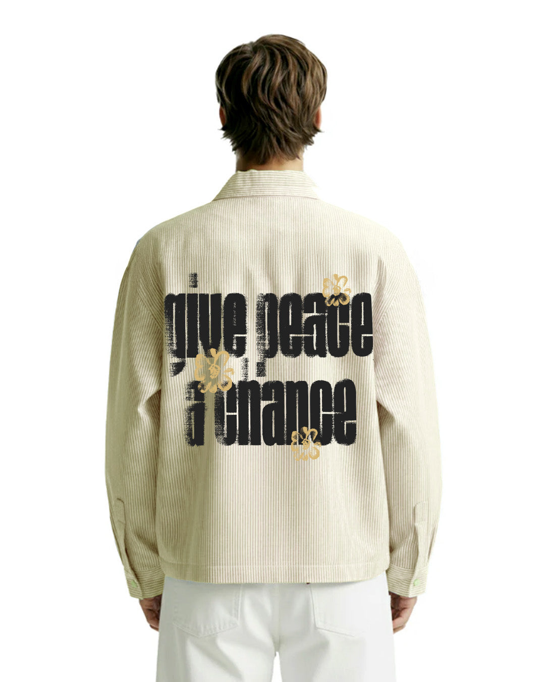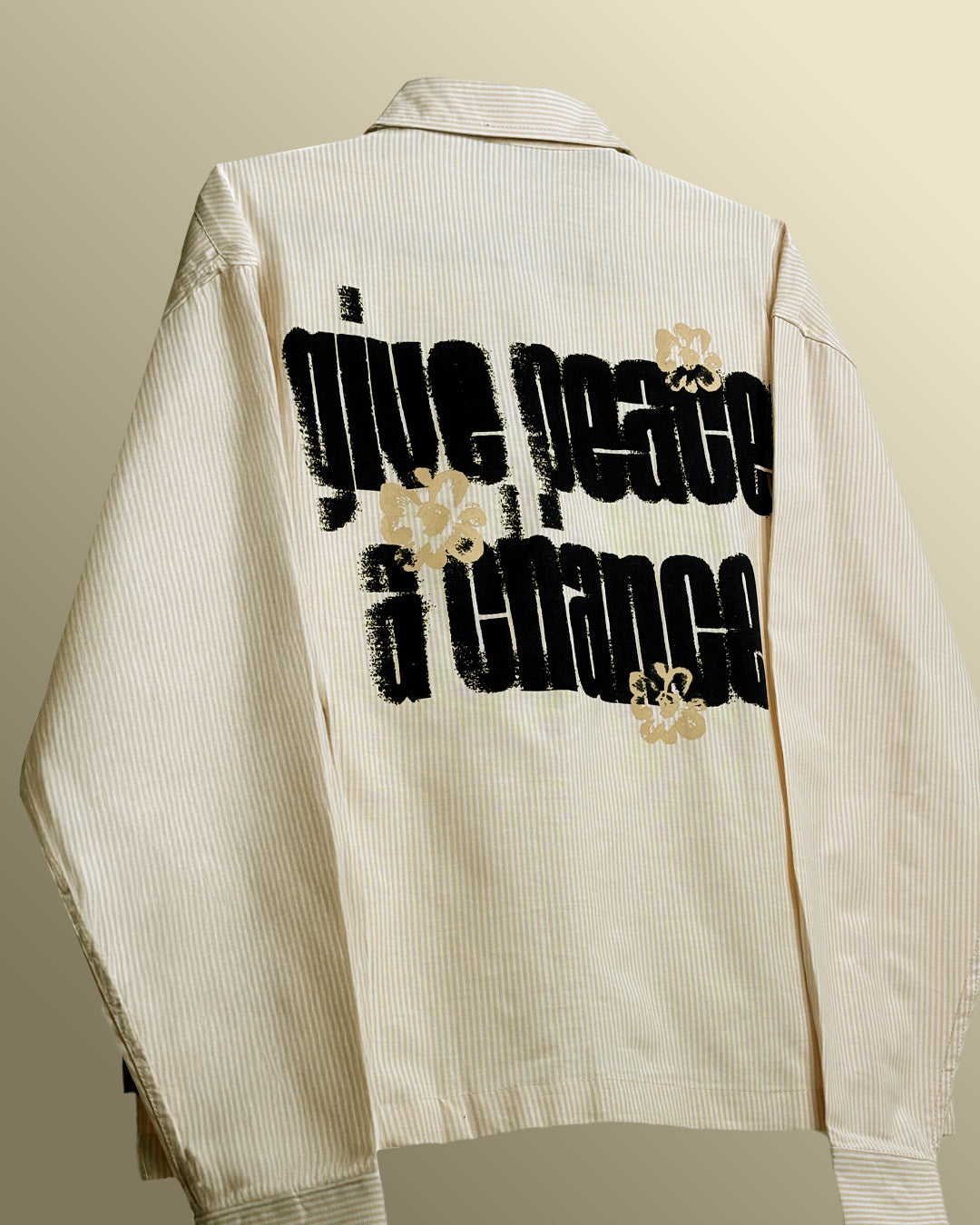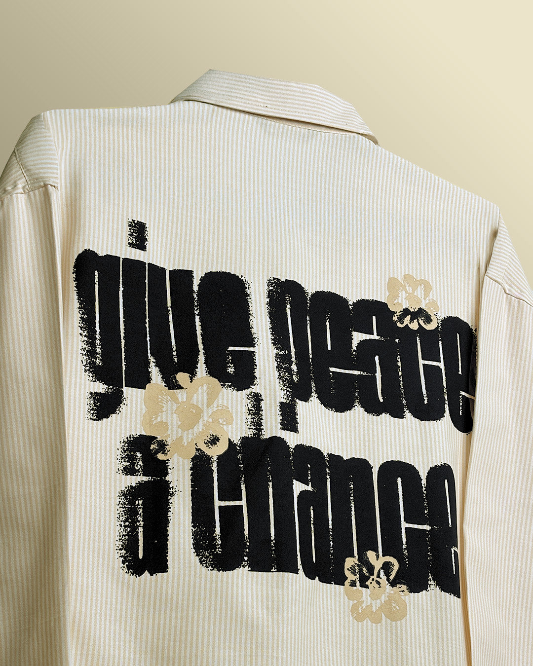 A shirt that feels as light as it looks. The yellow stripes bring a quiet warmth, while the message on the back reminds you and everyone around you to choose peace a little more every day.