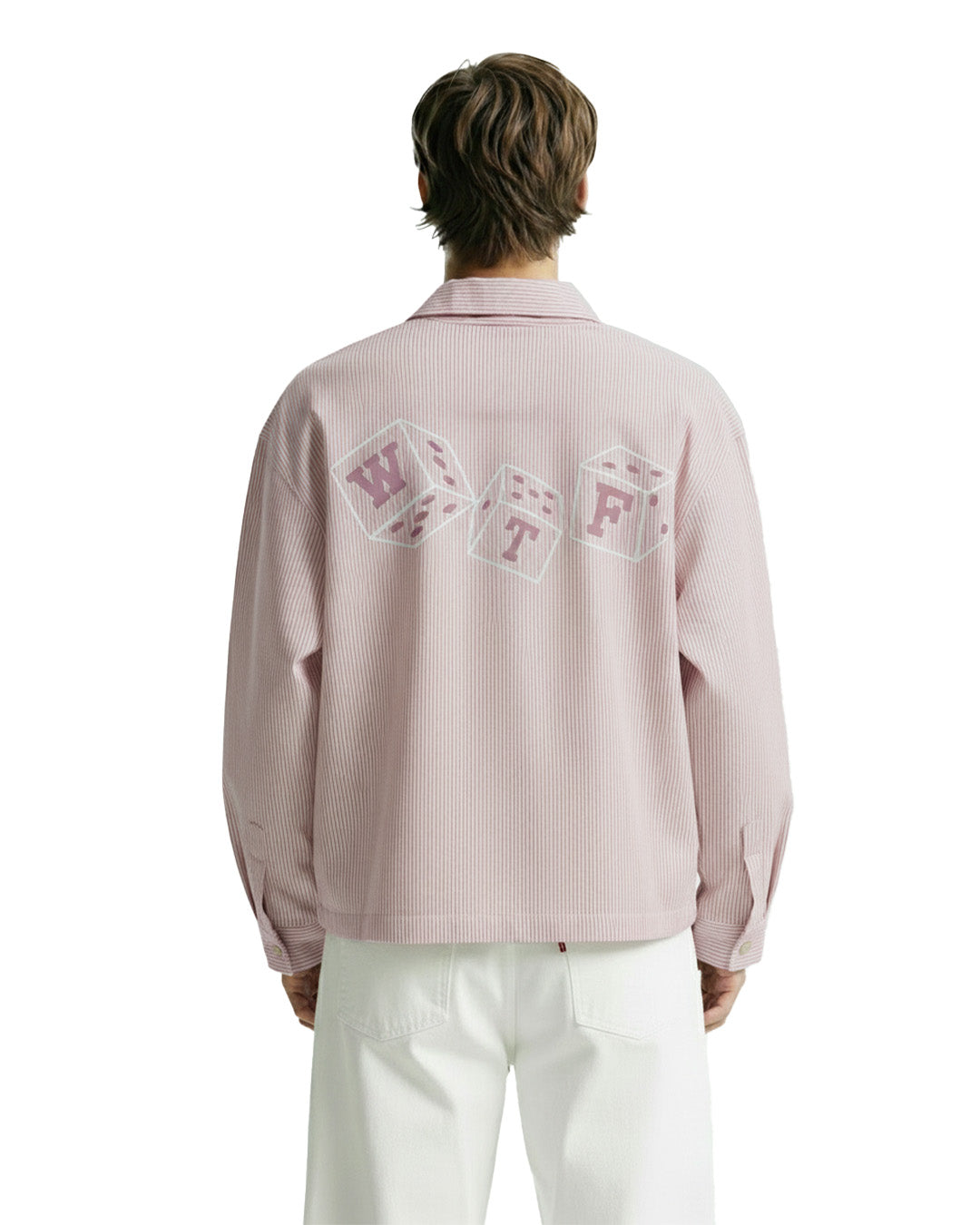 Clean, calm, but with a twist. This striped pink shirt keeps it classic in the front and playful at the back with the dice-inspired WTF graphic. Made from soft cotton for everyday comfort and effortless flex.