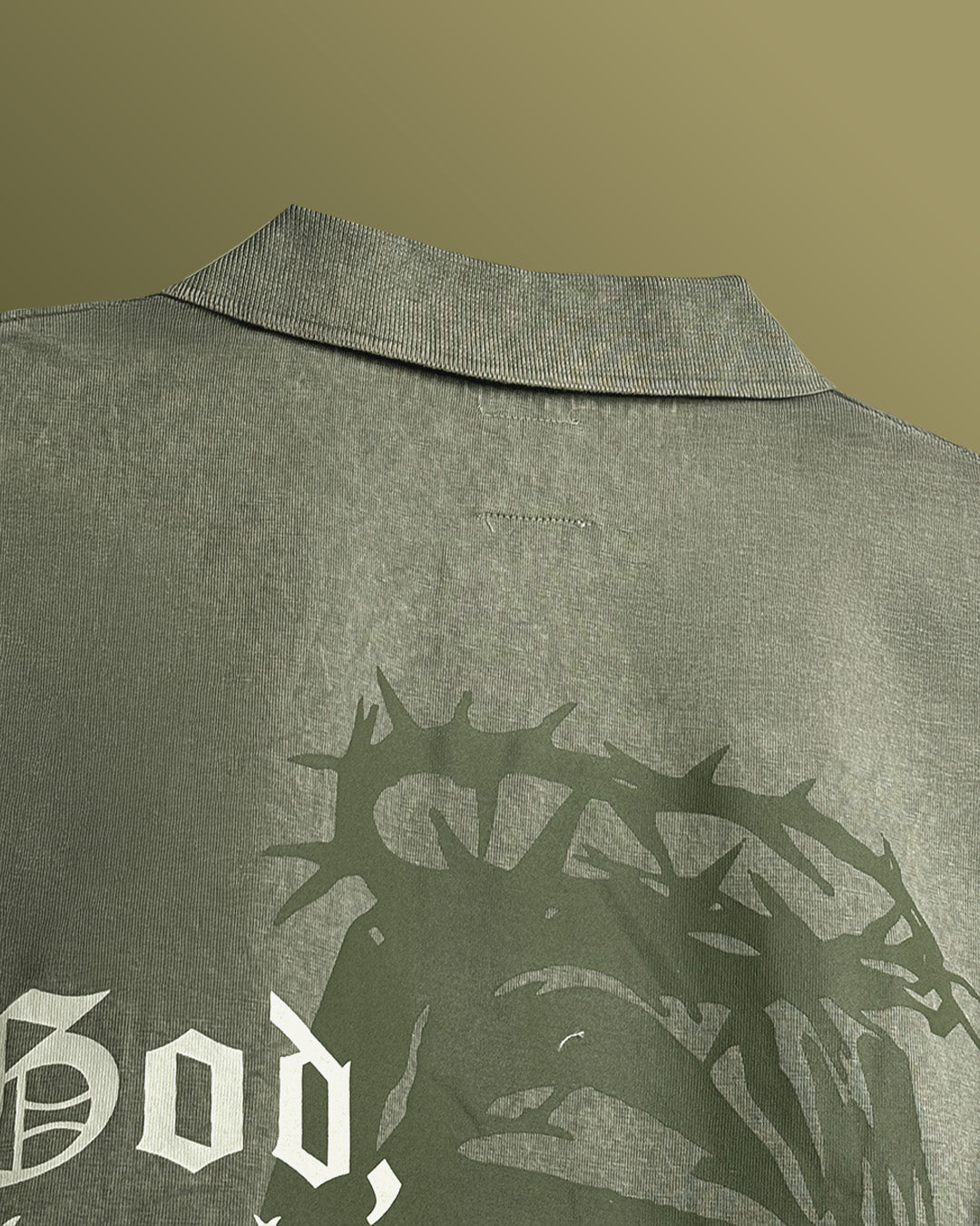 Thank God Acid Wash Polo is a statement piece that blends street energy with effortless ease. Washed in a lived-in acid finish, it carries the boxy fit that defines streetwear with a structured collar for sharpness. A bold back print sets the tone, making it more than just a polo , it’s a lifestyle flex.
